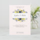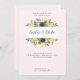 Invitation Mariage rose pâle à cadre fleuri jaune et bleu