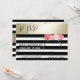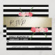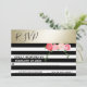 Invitation de réponse de mariage élégant moderne avec roses aquarelles à rayures noir/blanc or.
