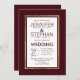 Ce contour de bande dorée fausse imprimé moderne, simple et élégant sur faire-part de mariage rouge et blanc bordeaux est idéal pour l'événement élégant et formel. Le design classique et sophistiqué est parfait pour le couple marié branché et élégant. Personnalisez avec votre propre message sur l'avant ainsi qu'avec un premier monogramme customisé sur l'arrière. Toute la conception d'impression photo.
