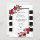 Un bouquet floral rose rouge moderne et une faire-part de mariage contemporaine rayée noire et blanche classe ajoutent facilement vos détails pour créer un design spécial pour votre journée spéciale.