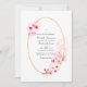 Invitation de mariage rose aquarelle fleurie de printemps avec fleur sakura avec cadre géométrique doré personnalisable selon vos spécificités d'événement. Idéal pour un thème ou un mariage de jardin. Le code QR au verso dirige vers votre site mariage où les gens peuvent en savoir plus et rsvp.
