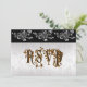 Elégante faire-part de mariage en or et en noir, carte de réponse RSVP avec belle bordure en damas noir et blanc. Illustration composition sur soyeux blanc satiné arrière - plan pour mariage, anniversaire ou modèle de partie de fiançailles Le texte est entièrement personnalisable. Ajoutez vos informations ou changez-les complètement. Sélectionnez une police et une couleur de police différentes. Le modèle peut être utilisé pour toute occasion spéciale. Il vous suffit de modifier le texte en fonction de vos besoins. Il s'agit d'un design imprimé sans ornements séparés.