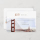 Assurez-vous que vos invités RSVP dans le style pour votre mariage San Francisco avec ces belles cartes RSVP mariage. L'avant de la carte présente une magnifique illustration de l'emblématique Golden Gate Bridge, qui illustre la beauté et l'amour de la ville. La typographie est sophistiquée et moderne, avec une belle police de script qui ajoute une touche d'élégance au design. Les détails essentiels du RSVP, y compris la date limite et le nombre d'invités présents, sont tous affichés en évidence sur le recto de la carte. L'impression de haute qualité et le matériel de carte garantissent à vos invités la qualité et l'attention aux détails de vos cartes RSVP de mariage. Que vous planifiez un mariage au coeur de San Francisco ou au bord de la baie, ces cartes sont le moyen idéal de recueillir toutes les informations importantes RSVP dont vous avez besoin pour votre journée spéciale. Commandez maintenant et laissez ces cartes étonnantes vous aider à planifier votre mariage San Francisco avec facilité!