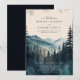 Cette invitation de mariage montagnard à l'aquarelle rustique est le choix idéal pour les couples qui aiment la beauté de la nature et le plein air. Le design présente des pins peints à la main à l'aquarelle dans des teintes riches de bleus foncés et de verts foncés, évoquant la beauté sereine et majestueuse d'un paysage montagneux.