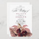 Faire-part de mariage moderne minimaliste noir et blanc avec une police manuscrite élégante avec des boucles et un monogramme de la mariée et du marié. Invitation classique et élégante, simple et moderne.