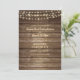 Une invitation rustique et mariage campagnard avec un arrière - plan patiné en planches de bois et des lampes à cordes jaunes. Tout le texte est modifiable (supprimez tout exemple de texte à laisser vide) et le style, la taille, la couleur et le placement de la police peuvent être modifiés pour répondre à vos besoins en cliquant sur l'onglet "cliquer pour customiser plus loin". L'arrière de l'invitation présente le même arrière - plan en planches de bois et offre un endroit pour mettre des informations supplémentaires. Contactez le concepteur si vous souhaitez personnaliser ou coordonner des éléments pour compléter votre expérience mariage.