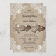 Ces invitations de mariage rustiques et élégantes, qui mettent en vedette des coeurs de burlap contre un burlap et un arrière - plan en dentelle orné de lampes à cordes, sont parfaites pour inviter vos invités à votre fête de mariage rustique de campagne/grange.