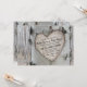 Faire-part de mariage champêtre élégant représentant un cadre extérieur boisé, et un arbre bouleau argenté rustique avec un cœur sculpté contenant les détails de votre jour de mariage.
