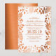 Cartes d'invitation de mariage élégantes de l'automne avec une dispersion de feuillage automnal/hivernal comprenant des pommes de pin, des glands, des feuilles et un modèle de mariage moderne.