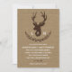 Le faire-part de mariage chic, brun et blanc de ce pays comporte un logo unique de mariage avec un cerf commun brun avec des andouillers, les initiales décorées d'un monogramme des jeunes mariés, le joli laurier, et une esperluète de calligraphie. La conception rustique inclut également un arrière - plan imprimé de papier d'emballage.