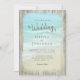 Cette invitation de mariage de plage rustique moderne comprend tous les détails sur le dos, avec un code QR pour faciliter à vos invités à RSVP en ligne. Le design côtier présente une scène de plage dans l'arrière - plan, encadrée de bois patiné rustique.
