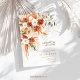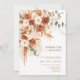 Célébrez votre jour spécial avec cette invitation de mariage florale en terracotte rustique élégante moderne. Dotée d'un superbe design à l'aquarelle représentant de l'herbe de pampa, des feuilles d'eucalyptus et de roses orange brûlé audacieuses, cette invitation capture l'essence d'un mariage d'automne. Les éléments floraux bohèmes lumineux et les tons de terracotta créent une ambiance chaleureuse et accueillante parfaite pour toute célébration saisonnière, y compris le printemps, l'été et l'automne. Avec sa calligraphie élégante et son design minimaliste simple, cette invitation allie sophistication moderne et charme rustique. Personnalisez cette belle invitation pour refléter votre style unique et charmez vos invités avec son élégance intemporelle.