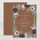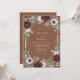 Ce design présente un fond riche en grain de bois associé à des accents botaniques luxuriants pour une esthétique rustique et maussade. Des roses bordeaux profond et rose pâle sont combinées avec des anémones pâles et un feuillage d'eucalyptus sauge argenté pour créer un contraste dramatique. Les textures naturelles et les tons de bijoux profonds évoquent une atmosphère cosy et élégante.
