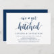 Cette carte d'invitation sur le thème rustique (Nous nous sommes mariés), avec une couleur de police personnalisée bleu marine, est parfaite pour votre célébration / annonce de mariage en petit comité. Ajoutez vos détails dans une police / lettrage noir assorti.