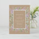 Ce design présente un fond chaud aux tons terreux qui offre une belle base pour les éléments floraux. De délicates brindilles de lilas violets et de feuilles d'eucalyptus vert tendre sont disposées autour du centre. Des détails complexes en dentelle blanche ajoutent une touche d'élégance vintage. Parfait pour un événement en plein air rustique, la palette de couleurs combine le beige, le lavande et le vert sauge.