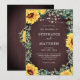 Ces invitations de mariage comprennent une bordure florale d'aquarelle de tournesols, des fleurs d'haleine pour bébé et du feuillage sur un arrière - plan en bois avec des lampes à cordes brillantes. Personnalisez-les avec votre propre texte. Visitez notre magasin pour voir la gamme complète d'articles que vous pouvez personnaliser pour votre mariage.