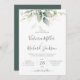 Belle invitation de mariage avec eucalyptus aquarelle et feuilles dorées.
