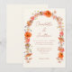 Cette invitation de mariage bohème Wildflower automne mélange élégamment l'élégance bohème chic avec un charme fantaisiste, ce qui en fait le choix idéal pour un mariage de printemps, d'été ou d'automne. Avec des florales uniques peintes à la main à l'aquarelle disposées dans une arche florale époustouflante, le design met en valeur une palette de couleurs vibrante mais terreuse, comprenant des nuances d'orange brûlée, de corail, de terre de Sienne brûlée, de violet, de brun, de jaune, de rose, d'orange, de terre cuite et de vert. Ces tons riches évoquent la beauté naturelle d'un jardin en pleine floraison, parfaits pour les couples qui souhaitent créer une atmosphère bohème décontractée mais élégante. L'écriture fantaisiste en orange brûlée ajoute une touche moderne de sophistication, complétant les florales organiques tout en conservant un charme rustique et élégant. Les modèles faciles à personnaliser vous permettent d'ajouter sans effort vos détails de mariage dans une belle typographie orange brûlée sur un fond beige doux. Conçu par l'artiste Catherine Sweetman, cette œuvre originale capture parfaitement l