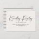 Carte R.S.V.P mariage de script contemporain simple noir et blanc. Un design moderne et abstrait. Partie d'une suite.