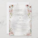 Une faire-part de mariage rose argentée et rousse avec des pivoines et des dahlias aquarellées en rose et blanc avec verdure contre un arrière - plan argenté brillant chaud avec vos noms dans une police de caractères élégante et les détails dans un serif en majuscules.