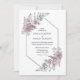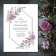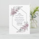 Une élégante faire-part de mariage rose et gris avec des feuilles fougères et des marguerites tenues par une simple fausse parties scintillant filaire.