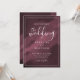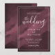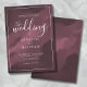 Cette invitation de mariage simple et élégante présente un fond aquarelle rouge bordeaux ou merlot avec des polices blanches. Le design offre des options de personnalisation, car le design aquarelle est posé sur le fond coloré, vous permettant d'ajuster les couleurs si vous le souhaitez. En haut, "Le Mariage De" est visible en calligraphie script gras, complété par une police serif classique et des accents de script pour le reste du texte. Un mince cadre de ligne blanche autour du bord ajoute une touche de sophistication. Cette invitation moderne et minimaliste est idéale pour les mariages d'automne ou d'hiver, tout en étant suffisamment polyvalente pour toutes les saisons. Son élégance chic et discrète garantit qu'elle complète une variété de thèmes de mariage, ajoutant une touche raffinée à votre journée spéciale. Invitation de mariage bordeaux aquarelle élégante moderne classe. Disponible en tant qu'invitation imprimée ou en tant qu'invitation numérique téléchargeable que vous pouvez envoyer par e-mail ou faire imprimer