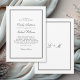 Simple, élégant et de bon goût, ce design classique de faire-part de mariage comprend une bordure double encadrant votre texte. La typographie classique de script traditionnel est utilisée pour les noms et la réception de la mariée et du marié avec la police serif intemporelle pour le texte mariage. Vous pouvez ajouter, supprimer ou ajuster le placement du texte en fonction de vos besoins. L'arrière - plan blanc toujours populaire ajoute à la simplicité propre de ce design. L'envers de l'invitation a un modèle texte pour inclure l'initiale monogramme de la mariée et du marié. Ces invitations sont disponibles en format de téléchargement numérique imprimé et sans papier.