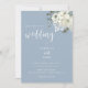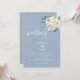Invitation de mariage élégante moderne bleu poussière avec des fleurs d'ivoire aquarelle et de la verdure.