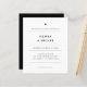 Simple faire-part de mariage noir et blanc. Police moderne avec un joli coeur et un arrière - plan noir solide sur le dos.
