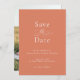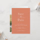 Un mariage classique et élégant Enregistrer la Carte Date avec un style minimaliste simple en orange avec typographie blanche. Ce design de bon goût présente des lettres serif classiques, jointes à un élément calligraphique élégant qui explique le mot - le. Le dos de la carte a un modèle photo pour ajouter la photo choisie. Personnalisez le modèle avec vos détails de mariage pour un classique élégant et magnifique Save the Date Card.