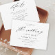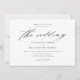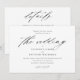 Une invitation de mariage élégante et simple noir et blanc avec une écriture moderne et un texte classique. Le dos comporte un espace pour des détails supplémentaires tels que la réception, l'hébergement et le site web du mariage. Cliquez sur le bouton modifier pour personnaliser ce design.