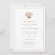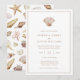 Invitation de mariage simple sur la plage. Unique et élégante, cette invitation de mariage moderne sur la plage présente de beaux coquillages peints à la main, du corail et des étoiles de mer dans des tons neutres terreux. Le texte est beige et le fond est blanc. Le dos comprend un motif fantaisiste de coquillages. Trouvez des articles assortis dans la collection de mariage sur la plage Watercolor Seashell.