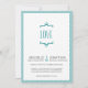 Simple et douce faire-part de mariage turquoise de style vintage a une image "LOVE" fantaisiste et amusante bordure épinglée. Collection mariage correspondante :