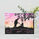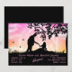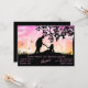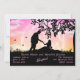 Silhouette romantique d'un couple sous un arbre avec une pleine lune en arrière-plan et quelques papillons. L'arrière-plan est un ciel étoilé, nuageux rose et orange. Idéal pour une annonce de fuite ou une fête de fiançailles.
