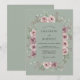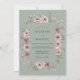 Cette création présente un fond vert sauge atténué superposé de délicates fleurs aquarellées dans des tons de rose poussiéreux et de rose doux. Une végétation luxuriante et de petits accents de baies s'entremêlent avec des ranunculus et de délicates fleurs pour créer une esthétique sereine. L'arrangement organique offre une atmosphère sophistiquée pour une cérémonie saisonnière romantique.