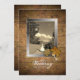 Invitation de mariage photo personnalisable avec cadre en bois vintage pour mariage champêtre, mariage d'automne, mariage country ou mariage western cowboy. La texture élégante du bois avec des feuilles automnales fantaisistes et un design encadré par un lampadaire ajoutera une touche sophistiquée à votre invitation photo !