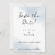 Cette simple carte de sauvegarde de mariage de plage minimaliste présente des polices de caractères classiques et modernes sur un fond aquarelle abstrait bleu poussiéreux et blanc inspiré de l'océan. Vous pouvez facilement personnaliser cette invitation de sauvegarde de mariage sur le thème de l'océan avec vos propres détails en utilisant ce design sur le thème de l'océan et cette palette de couleurs côtières. Il est polyvalent et peut être utilisé pour correspondre à de nombreuses idées et décorations de mariage sur le thème de la plage. Ces invitations de mariage de plage minimales et élégantes conviennent aux mariages tropicaux ainsi qu'aux mariages nautiques dans les climats plus frais. Parfait pour les couples qui aiment la mer (ou les peintures aquarelles artistiques modernes !).