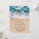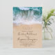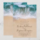 Invitation de mariage de destination de rêve sur la plage avec une rive côtière tropicale sablonneuse, des vagues de l'océan bleu aqua, des coeurs sculptés dans le sable avec vos initiales, et un modèle de mariage moderne facile à personnaliser.