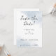 Cette simple carte de Save the Date pour un mariage minimaliste sur la plage présente des polices de caractères classiques et modernes sur un fond aquarelle abstrait bleu poussiéreux et blanc inspiré de l'océan. Vous pouvez facilement personnaliser cette invitation "Save the Date" pour un mariage sur l'océan avec vos propres détails en utilisant ce design sur le thème de l'océan et cette palette de couleurs côtières. Il est polyvalent et peut être utilisé pour correspondre à de nombreuses idées et décorations de mariage sur le thème de la plage. Ces invitations de mariage minimalistes et élégantes sur la plage conviennent aux mariages tropicaux ainsi qu'aux mariages nautiques dans des climats plus frais. Parfait pour les couples qui aiment la mer (ou les peintures aquarelles artistiques modernes !).