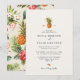 Invitation de mariage avec aquarelle tropicale d'ananas, de fleurs et de feuilles de palmier dans une mise en page élégante.