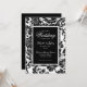 L'invitation de mariage sur mesure avec thème damassé noir et blanc sera parfaite pour le mariage, l'anniversaire, la baby shower, etc. Célébrez avec style et luxe avec cette collection élégante et formelle, elle ajoutera une touche époustouflante à votre maison. L'ensemble de la collection peut être modifié pour s'adapter à votre événement, il est personnalisable. Profitez, à votre santé !