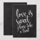 Un panneau de mariage élégant et moderne, avec le texte "L'amour est doux, prenez une gourmandise" dans une police de caractère script extrovertie, la texture de pinceau ajoute une sensation spontanée et ludique. La couleur de fond peut être personnalisée en fonction de vos besoins et préférences, veuillez me contacter si vous avez une demande spéciale.