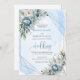 Invitation Mariage tendance Pastel Bleu Blanc Fleurs d'argent