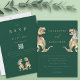 Cette invitation de mariage à code QR vert foncé sur le thème des dinosaures est un choix ludique et élégant pour les couples qui partagent une passion pour les dinosaures et qui souhaitent insuffler un peu d'humour dans leur papeterie de mariage. Avec une illustration aquarelle fantaisiste d'un couple de mariés T-Rex, le design allie une élégance simple à un charme désinvolte. La police moderne ajoute une touche contemporaine, garantissant que l'invitation reste chic tout en mettant en valeur la personnalité unique du couple. Les modèles faciles à utiliser facilitent la personnalisation, vous permettant de personnaliser les détails dans une typographie élégante pour correspondre à votre thème de mariage. De plus, le code QR inclus renvoie directement à votre site web de mariage, permettant aux invités de répondre facilement en ligne. Œuvre originale créée par l'artiste Catherine Sweetman, ces illustrations uniques capturent l'ambiance amusante et excentrique d'un couple qui aime les dinosaures tout en conservant une atmosphère élégante et raffinée. Parfaite pour les couples à la recherche d'une invitation de mariage aussi unique que leur relation, ce design est sûr de faire sourire vos invités et