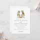 Rendez votre mariage inoubliable avec cette invitation de mariage unique sur le thème des dinosaures, mettant en vedette une illustration ludique d'un couple de T-Rex. Conçue pour les couples qui aiment ajouter une touche de fun à leur grand jour, cette invitation de mariage fantaisiste combine une typographie minimaliste moderne avec une illustration charmante de dinosaures dans des tons bruns doux, beige et crème.