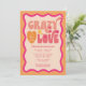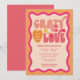 Célébrez la future mariée avec ces invitations tendance et uniques. Cette invitation rétro sur le thème "fou amoureux" orange pêche est personnalisable avec vos propres détails. Choisissez de les faire imprimer, recevez-les en téléchargement numérique ou les deux !