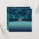 Élégants tourbillons de bleu aqua gaufrés et vignes florales sur un fond en velours bleu marine profond. Un ruban semblable à du velours avec un centre à bouton où vous pouvez ajouter l'initiale de votre monogramme pour votre mariage ou votre anniversaire.