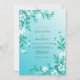 De délicates fleurs sarcelle et blanches dansent sur un fond dégradé doux. Une verdure luxuriante s'entrelace avec les fleurs, créant une atmosphère romantique et aérienne. Ce design évoque un sentiment de beauté naturelle et d'élégance sereine pour une occasion spéciale.