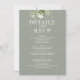 Cette élégante invitation de mariage vert sauge avec une typographie de verdure peut être personnalisée avec vos informations dans une typographie chic. Avec toutes les informations de votre jour de mariage spécial au verso, y compris votre RSVP, hébergement et détails supplémentaires. Conçu par Thisisnotme©