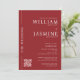 Un design élégant et sophistiqué, parfait pour les couples à la recherche d'une touche moderne. Ce modèle est décoré d'un arrière - plan rouge audacieux qui respire l'élégance et le style. Les noms sont affichés en évidence dans une police serif blanche classique, ajoutant un charme intemporel à la conception. L'expression "Le mariage" est élégamment positionnée le long du bord gauche, ouvrant la voie à un rassemblement intime. L'aménagement est propre et organisé, assurant ainsi que tous les détails de l'événement sont clairement présentés. Cette conception inclut des champs personnalisables pour la date, l'heure et l'emplacement de l'événement, ce qui vous permet de personnaliser facilement votre personnalisation pour votre famille et vos amis. . L'invitation fournit également un code qr pour lier à votre site Web mariage, assurant une expérience transparente pour les hôtes et les invités. cette conception d'invitation combine simplicité moderne avec élégance classique, en faisant un choix exceptionnel pour n'importe quel jour de mariage. si vous souhaitez une autre couleur pour votre thème mariage alors contactez-moi janine via mon magasin message bouton avec votre code hexadécimal de couleur requis et je serai heureux de le changer pour vous.
